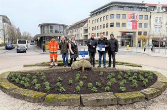 Im Rahmen einer besonderen Pflanzaktion wurden Vergissmeinnicht-Blumen in den Kreisel am Zentralen Omnibusbahnhof (ZOB) gepflanzt, um auf die Krankheit Demenz aufmerksam zu machen.