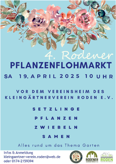 Gewerbliche Verkäufer sind von dem Flohmarkt ausgeschlossen. Es kann alles rund um das Thema Garten angeboten werden. Der Pflanzenflohmarkt wird vom Kleingärtnerverein Roden e.V. sowie dem Rodener Geschichtskreis e.V. veranstaltet.