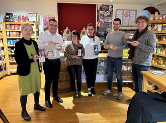 Die Verwaltungsspitze mit Oberbürgermeister Marc Speicher, Bürgermeister Carsten Quirin und Beigeordnetem Gerald Purucker nahm sich Zeit für einen Besuch im Weltladen in der Weißkreuzstraße. Bei einer Tasse Kaffee tauschte man sich intensiv über die Bedeutung des Fairen Handels und die lange Geschichte des Weltladens aus. Dabei wurde die Entwicklung des Ladens von den Anfängen in den 1980er Jahren bis heute beleuchtet. Die Gäste zeigten großes Interesse an den handgefertigten Produkten und der nachhaltigen Philosophie des Ladens.