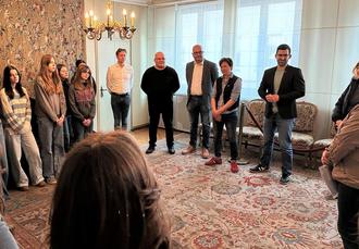 Die Schülergruppe wurde vom Bürgermeister im Gobelinsaal des Rathauses empfangen.