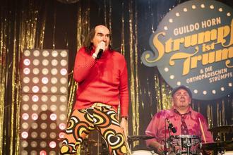 Es war Schlagerlegende Michael Holm, der Anfang der 90er Jahre bemerkte, dass plötzlich mehr Tantiemen für seine Lieder aufs Konto flossen. Irgendwo schien der gute alte Schlager also wieder Konjunktur zu haben. Bald darauf sollte Holm ‚den Meister‘ kennen lernen und als Konzertgast selbst erleben, wie die Menge tobt. Da fegte Guildo Horn aus Trier über die Bühne. Das sei fast wie Mick Jagger, nur in anderer Optik und mit anderen Songs, stellte Holm neidlos fest. Bis heute tobt der Sturm ums musikalische „Cap Horn“, wenn Guildo mit den Orthopädischen Strümpfen die großen Hits der vergangenen Jahrzehnte intoniert und internationale Coverversionen mit lustigen Texten präsentiert. “Wir nehmen euch mit auf eine musikalische und optische Reise in die unvergessenen Höhen und „Abgründe“ der 70er Jahre. Ein bunter Mix, ein klingender Blumenstrauß aus Schlager, Disco- und Glamrock, gespickt mit Fernseh-Jingles und den bekanntesten Melodien, die uns unsere Kindheit versüßt haben“, freut sich Guildo Horn. Der Nussecken-Fan gibt die großen Schlagerhits von Holm und Co zum Besten, im Sound gewürzt mit einer Prise Rock und ordentlich Wumms auf der Bassdrum, zum Mittanzen und Mitsingen. Die Band ist perfekt besetzt und klanggewaltig: Addi Mollig, Keyboard & musikalische Leitung, Mademoiselle Gazelle am Saxofon, der ewige Strull am Bass, Kikki Pfeifer an den Drums, Lotus Zander an der Gitarre. Prädikat: Besonders Orthopädisch!