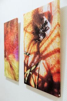 Auf den ersten Blick könnte man meinen, es seien Gemälde, die dem Betrachter im Wadgasser Rathaus auf den Leinwänden begegnen. Manche von farbenfroher Abstraktheit, andere von präziser Schärfe. Nahaufnahmen von Pflanzen und ungewöhnliche Perspektiven, die sich dem Betrachter erst nach genauerem Hinsehen erschließen. Gertrud Jakobs, die all dies Werke erschaffen hat, verwendete dafür aber weder Pinsel noch Farben, sondern eine Digitalkamera. Die passionierte Fotokünstlerin begann mit der Fotokunst erst nach ihrem Renteneintritt, aber dafür mit umso mehr Leidenschaft. Malerei und Fotografie haben sie zwar schon immer begeistert, aber es fehlte ihr die Zeit. „Meine frühere Tätigkeit als Leiterin der Volkshochschule der Stadt Saarlouis ließ mir nicht viel Zeit für Hobbys und so begann ich erst gegen Ende meines Berufslebens meine Leidenschaft in die Tat umzusetzen“, erzählte Gertrud Jacobs. Zunächst besuchte sie verschiedene Kurse, um die Grundlagen der Fotografie zu erlernen. Es folgten Workshops bei namhaften Fotografen. Der Austausch mit anderen Fotografen einer Fotogruppe war zudem eine Inspiration und half ihr bei der Entwicklung ihrer eigenen Richtung. Gertrud Jakobs hat ein Auge für Details und entdeckte beim Fotografieren ihre Faszination für Strukturen und Perspektiven. Genau das findet sich in ihren Werken. Manche Fotografien sind erst auf den zweiten Blick als Baumrinde oder Heizkörper zu identifizieren. „Meine Bilder tragen bewusste keine Titel“, erklärte Gertrud Jakobs. Dadurch würden die Betrachter in die Lage versetzt, sich intensiver und zugleich vorbehaltlos mit den Fotografien auseinanderzusetzen. „Jeder soll das, was er auf der Leinwand sieht, für sich selbst definieren“, sagte die studierte Psychologin. Lediglich die Ausstellung hat einen Titel: „Vor der Haustür“ und genau da sind die Aufnahmen entstanden. In unmittelbarer Nähe ihres Wohnortes in Saarbrücken.