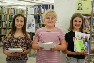 Clara Wolf (links) ist die Saarlouiser Lesedino-Gewinnerin 2023. Hannah Christina Anell (Mitte) wurde Dritte, Louise Meißner Zweite.