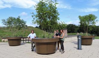 Die Planung und Umsetzung der Maßnahme fand unter Federführung der städtischen Freiflächenplanung statt. Die zuständige Projektleiterin Christina Altmaier sowie Amtsleiter Mario Natale haben in enger Zusammenarbeit und Abstimmung mit Baumschulen und dem städtischen Betriebshof nicht nur eine sehr gute ästhetische Auswahl getroffen. Die Bepflanzung der Kübel erfolgte mit hitzeresistenten, trockenheitstoleranten Arten (Blasenesche, Judasbaum und Edelflieder), die sich auch durch eine auffällige Blüte bzw. Herbstfärbung auszeichnen und einen ausladenden und somit schattenspendenden Wuchs entwickeln werden. Auf dem Kleinen Markt stehen insgesamt acht Baumkübel, wovon vier auch als bequeme Sitzgelegenheit im Schatten genutzt werden können. Auf dem Roland-Henz-Platz stehen drei große Baumkübel, die Besuchern der Festungsanlage temporär Schatten und Abkühlung spenden.