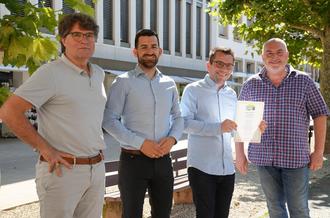 v.l.: Beigeordneter Gerald Purucker, Bürgermeister Carsten Quirin, Oberbürgermeister Marc Speicher und Michael Leinenbach (Stabsstelle Sozialplanung) Foto: Lea Mathieu