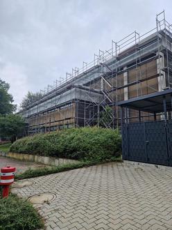 Das Gerüst macht es deutlich: In den Sommerferien haben auch die Arbeiten zur Sanierung des Flachdachs an der Sporthalle der BBS Rodalben begonnen.