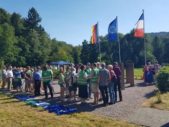 Zahlreiche Europa-Aktivisten waren zum 75. Jahrestag des Studentensturms an das Europa-Denkmal am Grenzübergang St. Germanshof gekommen.