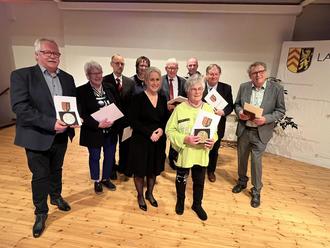 Die Ehrenplakette des Landkreises in Bronze für eine Amtszeit von 15 Jahren und länger als Ortsbürgermeister erhielten Armin Ladenberger (Darstein), Edgar Perret (Spirkelbach), Harald Wadle (Clausen), Peter Spitzer (Donsieders) und Gunther Veith (Walshausen). Für ihr Wirken im Kreistag wurden Roland Gappa (Dahn) und Thomas Zwick (Bruchweiler-Bärenbach) geehrt.