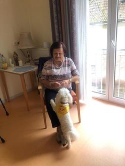 Gertrud Sefrin im Haus Bethesda in Thaleischweiler-Fröschen freut sich jedes Mal, wenn Besuchshund Susi zu Gast ist.