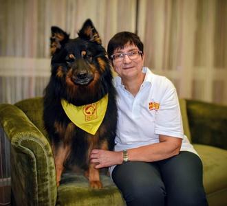 Ulrike Leimbeck - hier mit ihrem „Wasti“ - leitet den Pirmasenser ASB-Besuchshundedienst.