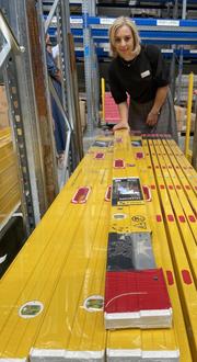 Alles im Lot: WFG-Geschäftsführerin Miriam Heinrich bei einem Besuch im neuen STABILA Logistik- und Servicezent-rum im Gewerbegebiet Wilgartswiesen-Hauenstein.