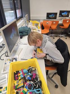 Philipp Link entwickelt eigenständig einen Roboter mit Legoteilen. Dieser soll eine alternative Technik verwenden, um in die Kurve zu fahren. Geplant ist auch, dass der Roboter Hindernisse erkennen kann.